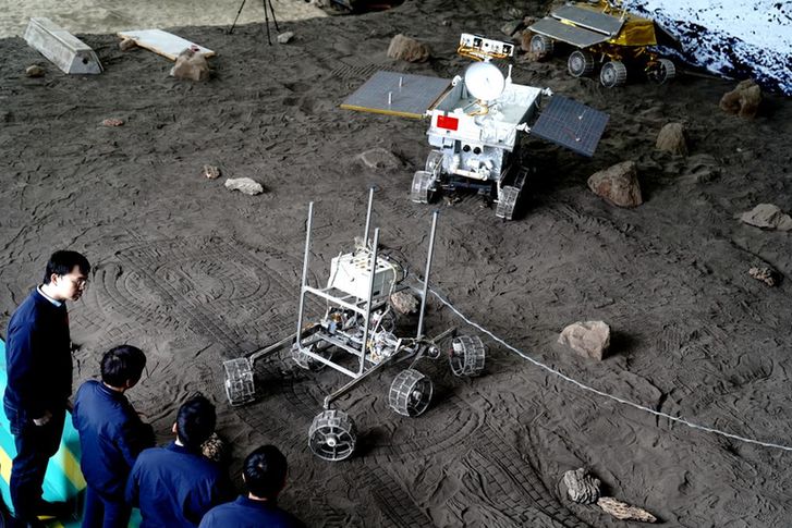憋着一口气,张玉花下决心要让玉兔二号走得更远。她带领团队优化设计,专门从吉林运来火山灰模拟月壤,当月球车走在火山灰上,整个试验场都弥漫着灰尘,吸入体内或粘在皮肤上会造成刺激。为避免扬起灰尘,夏天试验场不能开空调,室内温度达到40多摄氏度。张玉花和试验人员只能戴着口罩,穿着雨衣、雨鞋,大汗淋漓地做试验。
