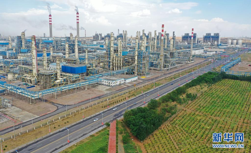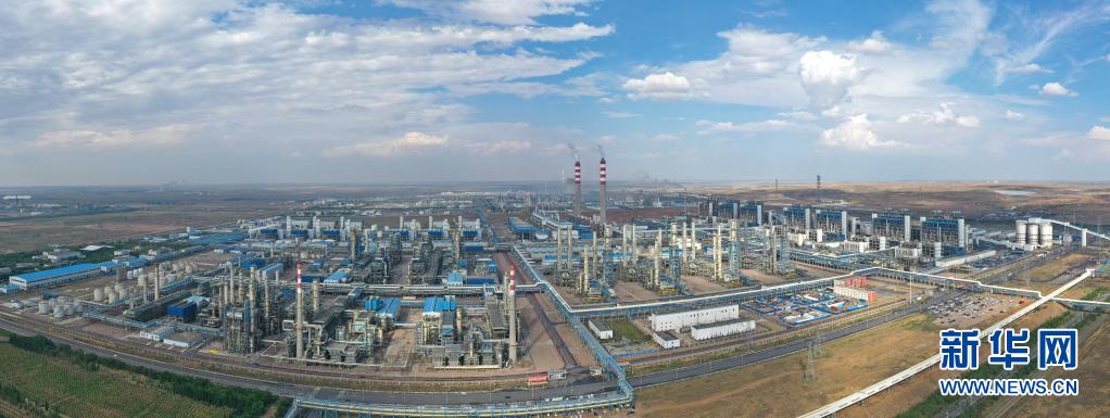 国家能源集团宁夏煤业有限公司400万吨煤制油项目全景(无人机照片,7月16日摄)。新华社记者 王鹏 摄