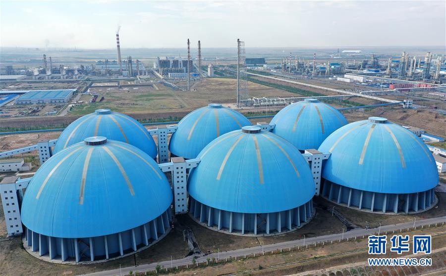 国家能源集团宁夏煤业有限公司400万吨煤制油项目备煤仓(无人机照片,7月16日摄)。新华社记者 王鹏 摄