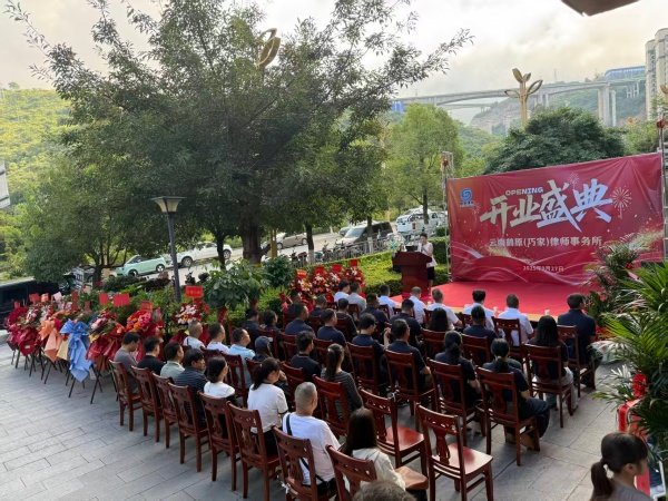 仪式高潮环节,剪彩与揭牌仪式先后举行。在全场嘉宾的注视下,巧家县司法局局长张庆辉、副局长赵盛韬,昭通市律师协会代表,以及孙健、张勇和我共同为分所剪彩;随后,张庆辉与孙健一同揭下牌匾上的红绸,“云南鹤原(巧家)律师事务所”的金色牌匾在阳光下熠熠生辉,现场响起热烈掌声。