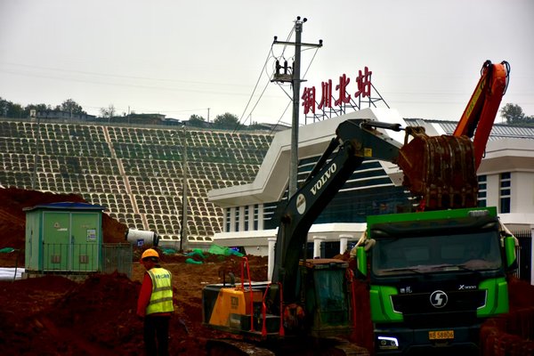 在施工现场,记者遇到了王益经开区管委会主任张江峰,他告诉记者,“我们经开区的平台公司承建了三个项目,其中铜川北站连接线公路工程项目线路目前已经完成总工程量的80%。铜川北站停车场建设项目目前广场部分支护工程已全部完成,挖填方完成70%左右,目前已经完成总工程量的75%。站前广场市政配套项目已全部完工。近期虽然连阴雨缠缠绵绵下了40多天,但是却挡不住施工工人赶工期的脚步,工程正朝着胜利的终点全力冲刺。”