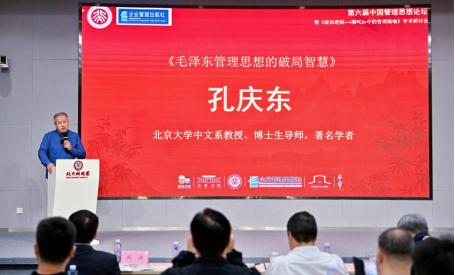 著名学者、北京大学中文系教授、博士生导师孔庆东以“毛泽东管理思想的破局智慧”为主题,阐释了 “在秩序废墟上重写规则” 的创新逻辑。指出《破局逻辑》中“合体共生”的思维,与中国共产党在革命与建设中整合资源的战略思维一脉相承。