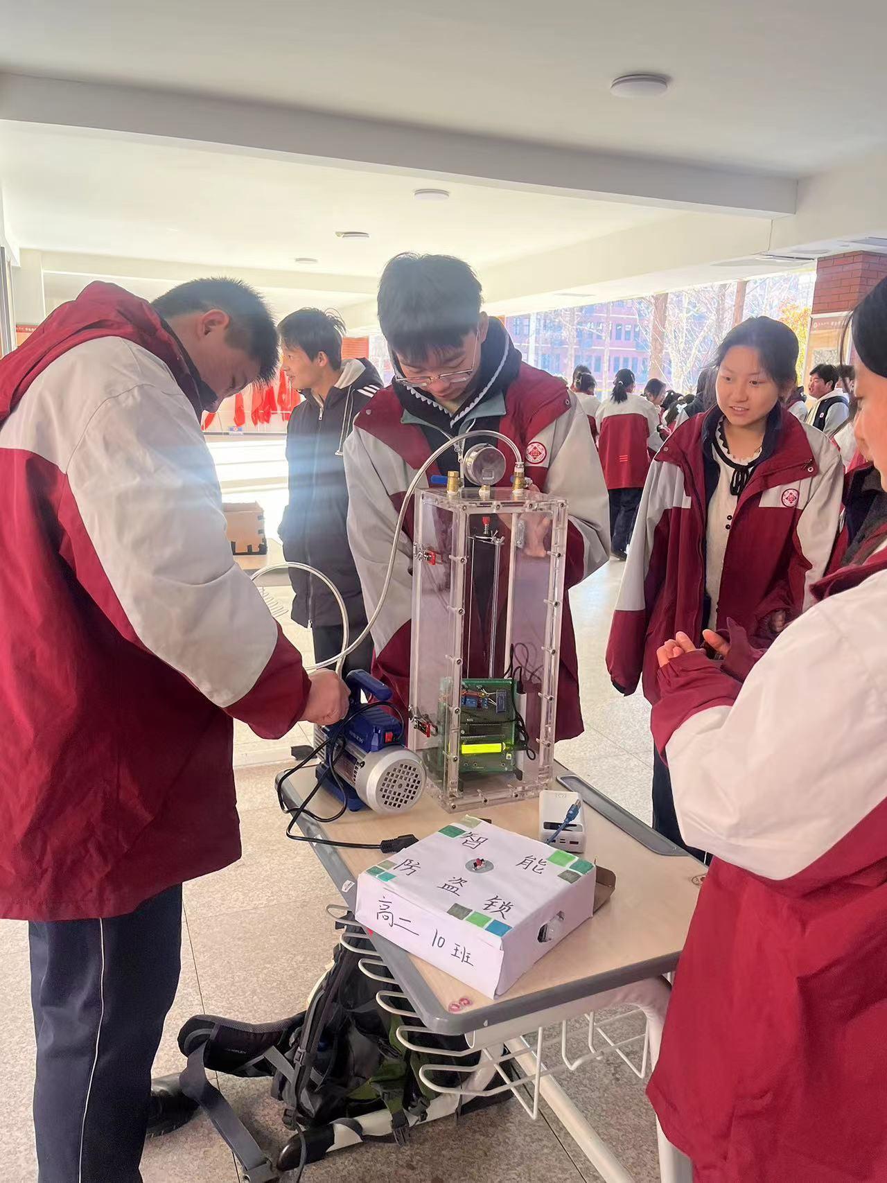 科普活动与特色展示双线发力,成为科技节的“高光亮点”。早在12月23日,高二年级会议室就上演了趣味科学实验,奇妙的科学现象提前点燃了师生的科创热情;12月25日作为活动核心日,更是精彩不断——当日14:00-17:30,学校体育场同步开展机器人专项展示活动,编程机器人、鲸鱼虚拟机器人等科创作品集中亮相,通过路径规划、指令响应等系列演示,近距离展现人工智能与编程技术的独特魅力,极大激发了学生探索科技、钻研技术的好奇心与求知欲;晚间,小礼堂的专家科普讲座传递前沿科技理念,与王益区科技馆联动的“馆校结合”科普展览,则实现了校内资源与社会资源的有机整合,让学生在沉浸式体验中全方位感受科技魅力。