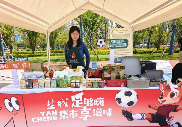 4月25日,2026江苏省城市足球联赛(苏超)第三轮赛事火热开赛。赛场之上竞技争锋、热血澎湃;赛场之外,铜川特色好物主题展台人气爆棚、圈粉无数,成为本次赛事场外一大亮眼风景线。耀州瓷、秦脆苹果、香菇深加工制品、天然蜂蜜水等多款铜川优质特色产品集中亮相,带着黄土高原的生态风味与人文底蕴,收获盐城球迷与市民广泛好评。