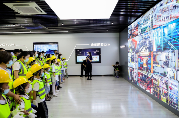 岚图邀请用户参观智能工厂,大屏实时显示工厂生产全过程