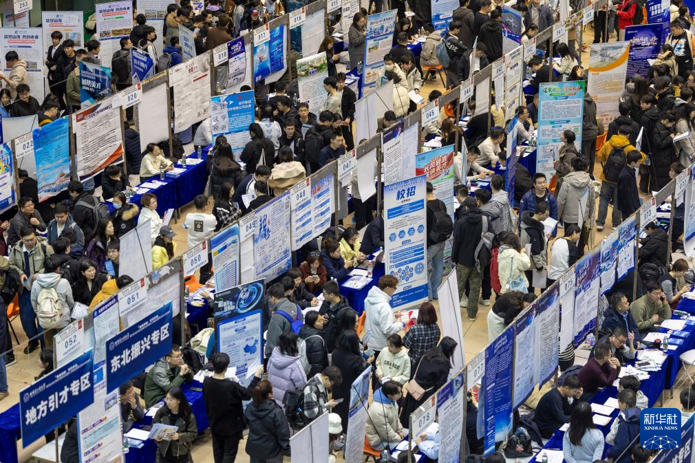 3月26日,在哈尔滨工业大学一校区体育馆内,学生在招聘会现场查看岗位信息。