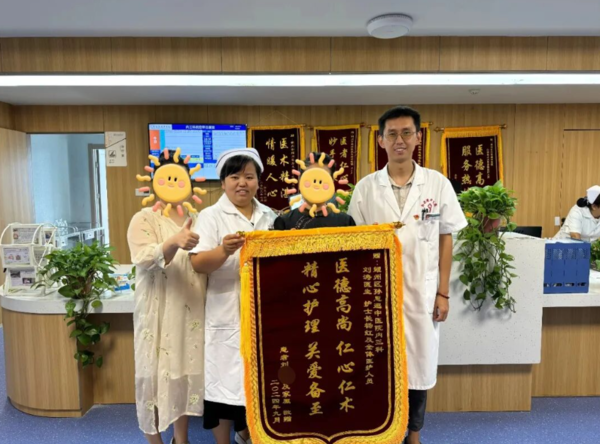 《智慧中国》网讯 “这面锦旗,不只是缝了几行金字,而是缝进了我的第二次生命!”9月20日上午,68岁的刘阿姨把锦旗展开的一刹那,红绸映红了耀州区孙思邈中医院内三科整个护士站,也映红了刘涛医生略显疲惫却笑意盈盈的脸。近一个月来,耀州区孙思邈中医院已接连收到患者自发赠送的锦旗6面、感谢信十余封,成为医院里最“热”的风景线。