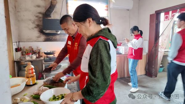 志愿者们默契地行动起来,无需分工。清扫院落、整理床铺、晾晒衣物、洗菜烹饪……锅碗瓢盆的叮当声,交织成一曲温暖的生活乐章。不到一小时,一顿色香味俱全的午餐便已端上桌。