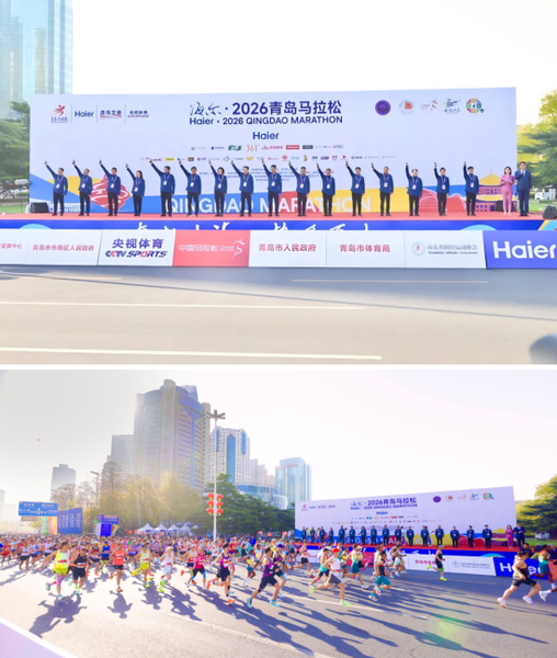 4月19日上午7:30,海尔·2026青岛马拉松于青岛市人民政府正门口鸣枪起跑!两万五千名跑者踏浪而来,共聚这座山海相拥的城市,以步履为序、以热爱为魂,赴一场奔跑之约,在红瓦绿树、碧海蓝天间,让每一份热爱在赛道上绽放光芒。