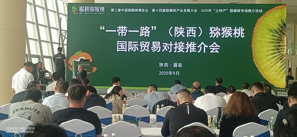 《智慧中国》网讯(王根平 冯永春) 9月19日,第三届中国猕猴桃博览会核心活动——“一带一路”(陕西)猕猴桃国际贸易对接推介会在国家级(眉县)猕猴桃产业园区盛大启幕。哈萨克斯坦、阿联酋等“一带一路”沿线国家客商,国内主产区市县党政领导、头部采购商及眉县果业企业代表共200余人齐聚“中国猕猴桃之乡”,以果为媒,共商产业合作、共拓国际市场。