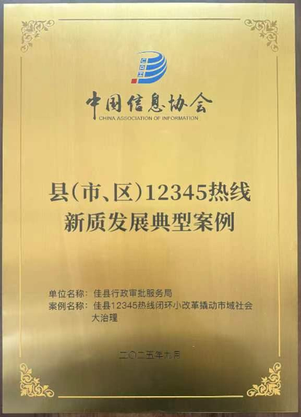 近日,由中国信息协会主办的2025县(市、区)12345热线发展大会在山东烟台召开,其中由佳县行政审批服务局报送的《佳县12345热线闭环小改革撬动市域社会大治理》案例从全国众多参评案例中脱颖而出,成功获评全国县(市、区)12345热线新质发展典型案例。