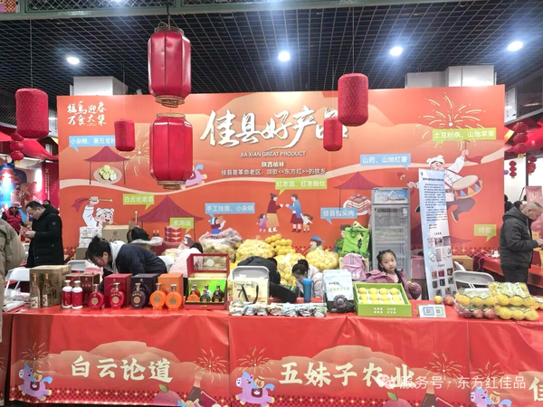 佳县带来的,不只是年货,更是黄土高原独有的“味道”:手工挂面、小米等传统农产品,留存着最地道的陕北风味;红枣酒、红枣醋饮枣香浓郁,酸甜开胃;包头肉卤香醇厚,肉质紧实;天然压榨食用油香气纯正;枣花蜜清甜润口;土豆粉条、山地苹果、山药、红薯等生态农产品,则以筋道、脆甜、粉糯的多样口感,让扬州市民一站式品味陕北大地的丰润滋味。