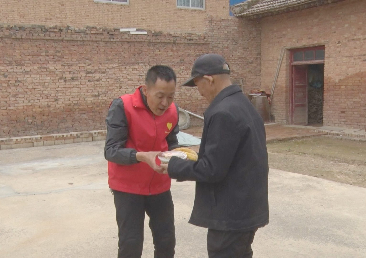 村民张军长说:“盼盼给我把饭送到屋里,热乎乎的!”