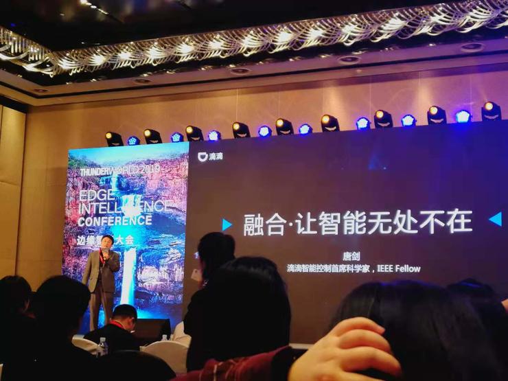 12月6日下午,在中科创达举办的边缘智能大会上,滴滴出行智能控制首席科学家IEEE院士唐剑的演讲主题是“融合.让智能无处不在”,他分享了滴滴的大数据+AI的深度融合,以及如何从人、车、路打造智慧交通。