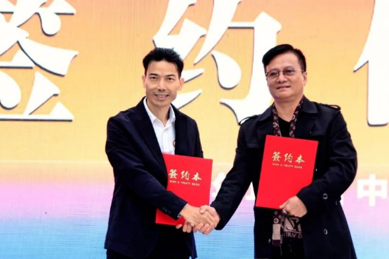 站在中国链接东盟的桥头堡,北投·明月荟影视基地的建设顺应当前影视发展多元化格局趋势,更是对外文化交流的重要窗口,组委会牵手北投·明月荟影视基地共建“邕城东盟影圩剧场”,打造不落幕的户外影院,让光影和生活紧密相连,广西北投明月湖商业投资有限公司常务副总经理、北投·明月荟影视基地负责人黄文峰先生上台与组委会总策划兼首席执行官谢朝旭老师签署共建合作协议。